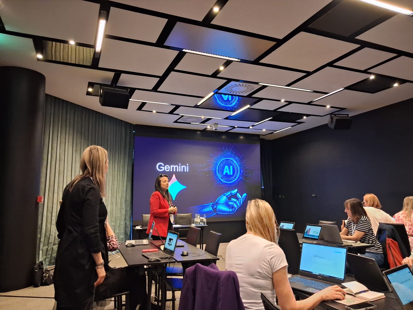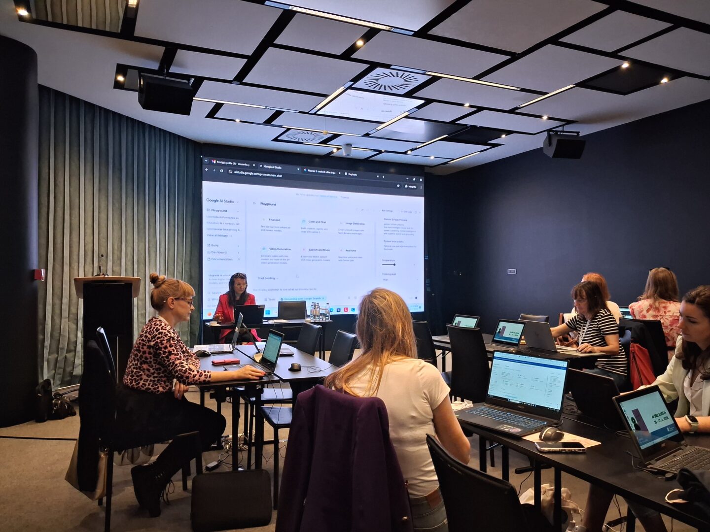 Kroz praktične primjere pokazale su kako umjetna inteligencija može obogatiti nastavu – od pretvaranja slike u video, izrade infografika i vizualnih materijala, do kreiranja audio sadržaja, stripova i nastavnih priprema. Naglasak je bio na jednostavnoj, smislenoj i učenicima usmjerenoj primjeni AI alata u svakodnevnom radu.