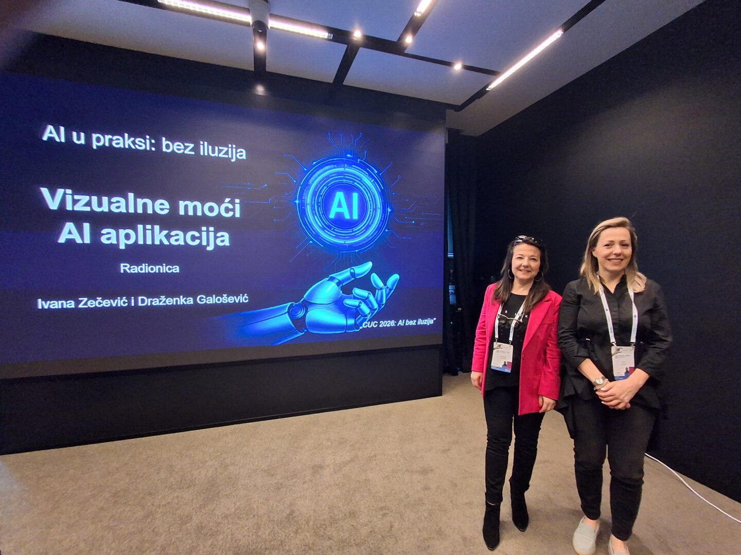 Naše profesorice informatike, Ivana Zečević i Draženka Galošević, sudjelovale su na CUC 2026 – Carnet Users Conference, gdje su predstavile svoj rad „Vizualne moći AI alata“.