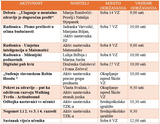 RASPORED AKTIVNOSTI ZA DAN ŠKOLE