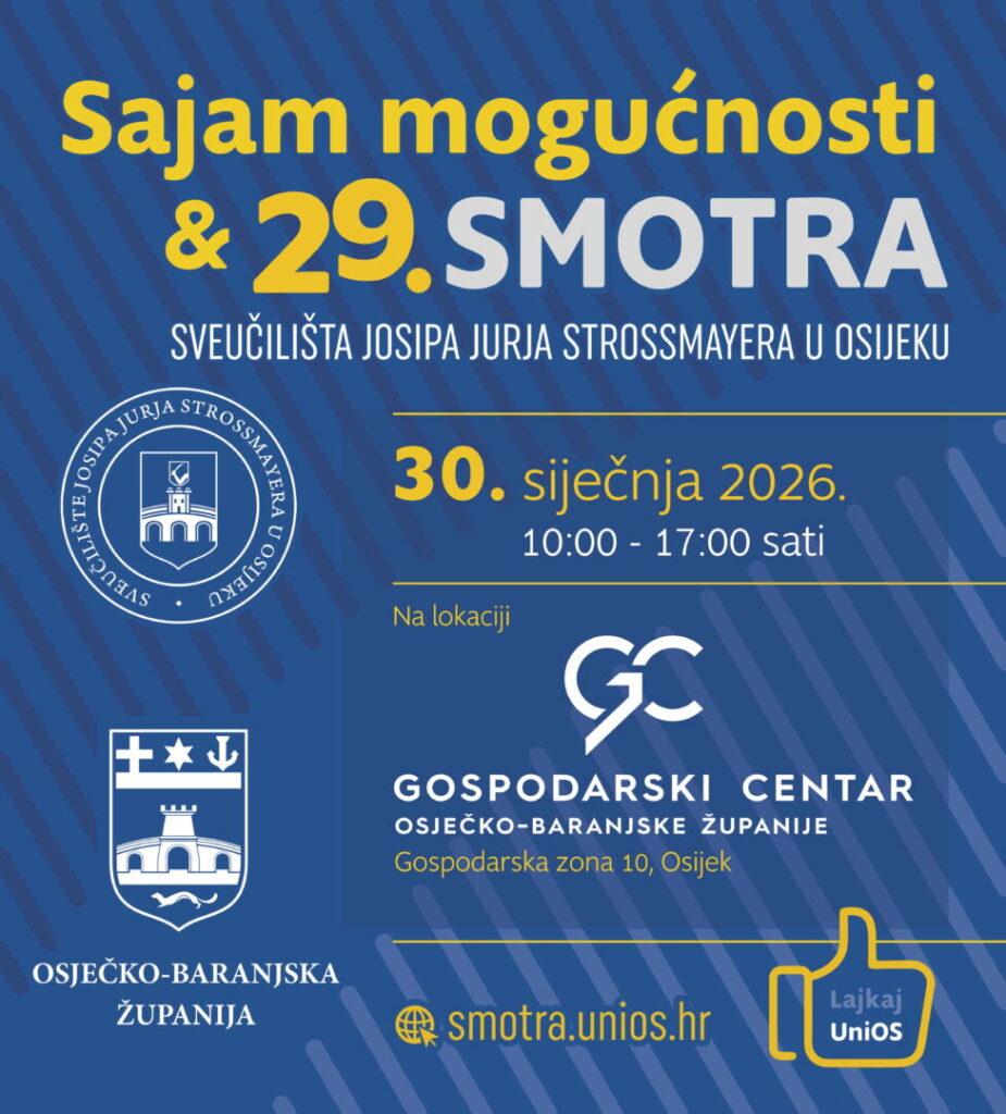 Pozivamo sve učenike završnih razreda i njihove roditelje na Sajam mogućnosti i 29. Smotru Sveučilišta J.J. Strossmayera u Osijeku!