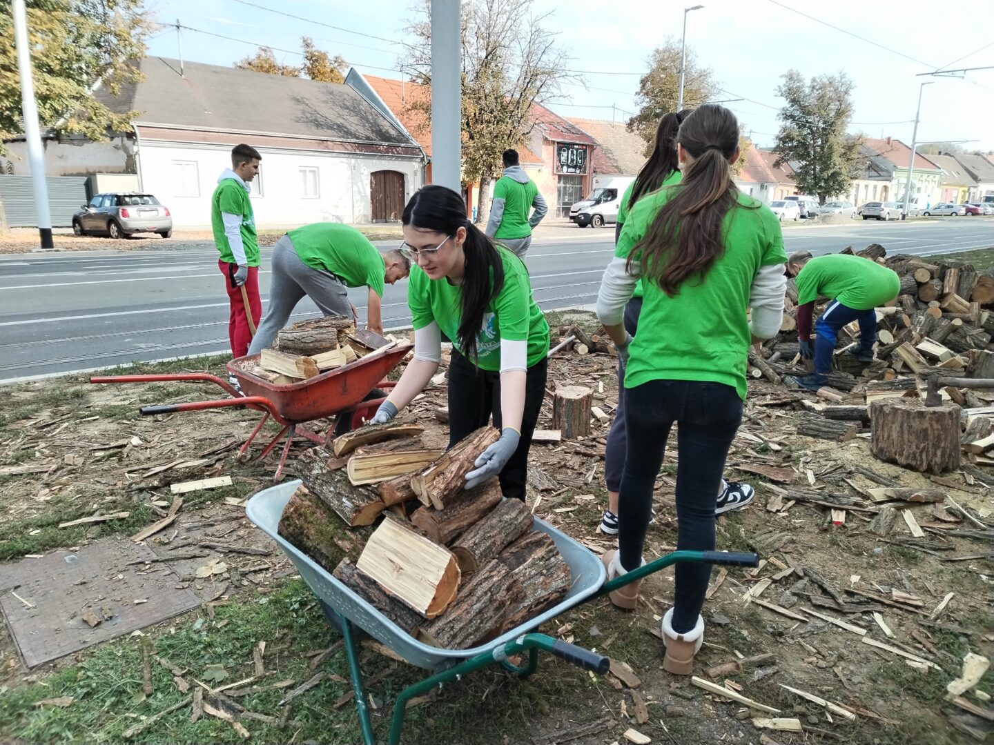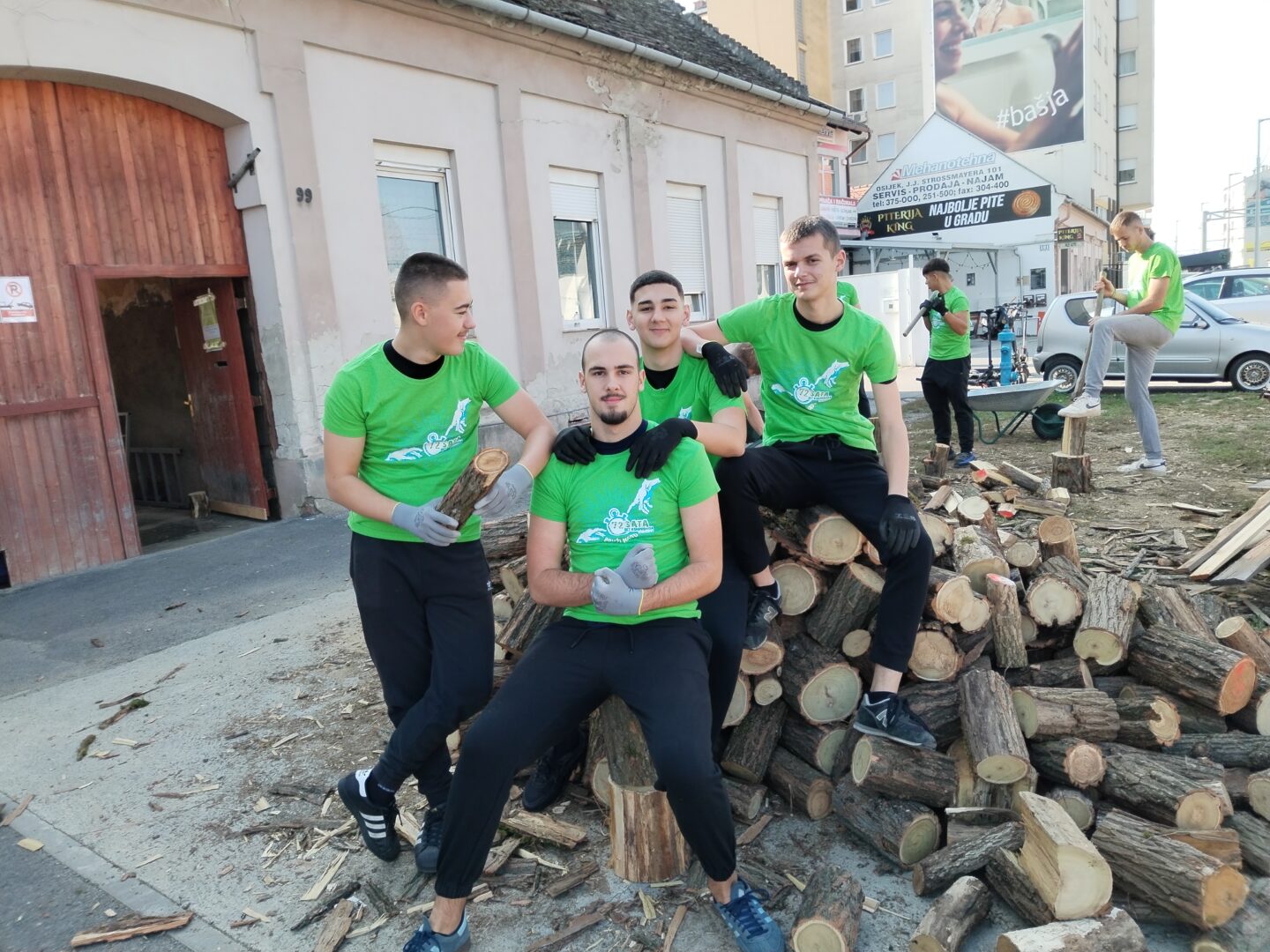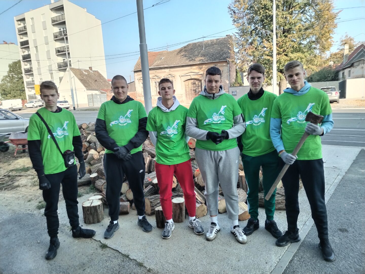 16 volontera naše Škole odabralo je  akciju cijepanja i uvoza drvenog ogrjeva za jednu stariju gospođu, koja to više ne može činiti sama.