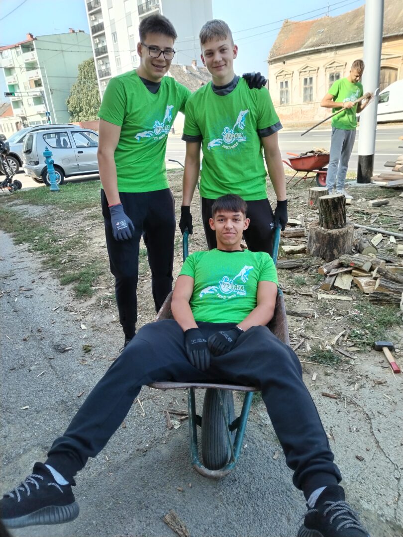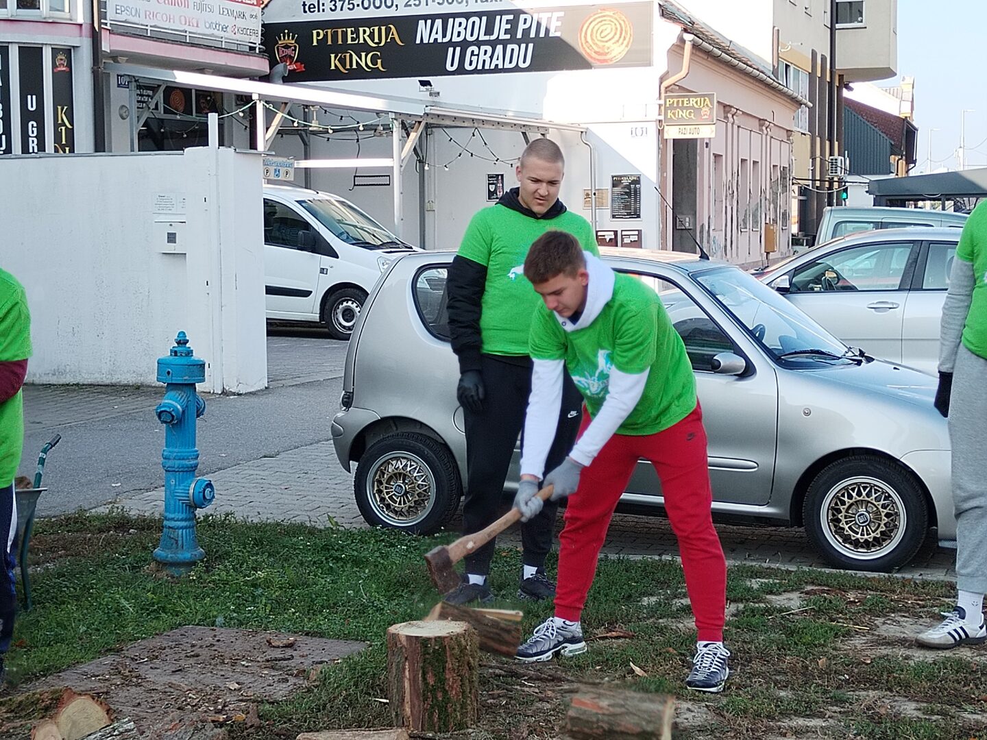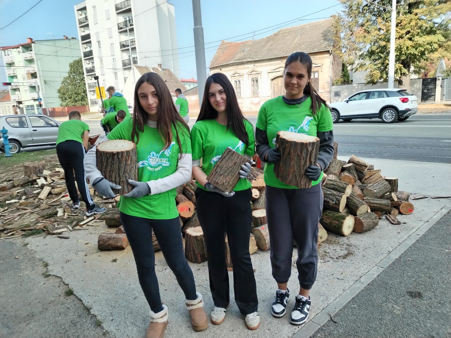 16 volontera naše Škole odabralo je  akciju cijepanja i uvoza drvenog ogrjeva za jednu stariju gospođu, koja to više ne može činiti sama.